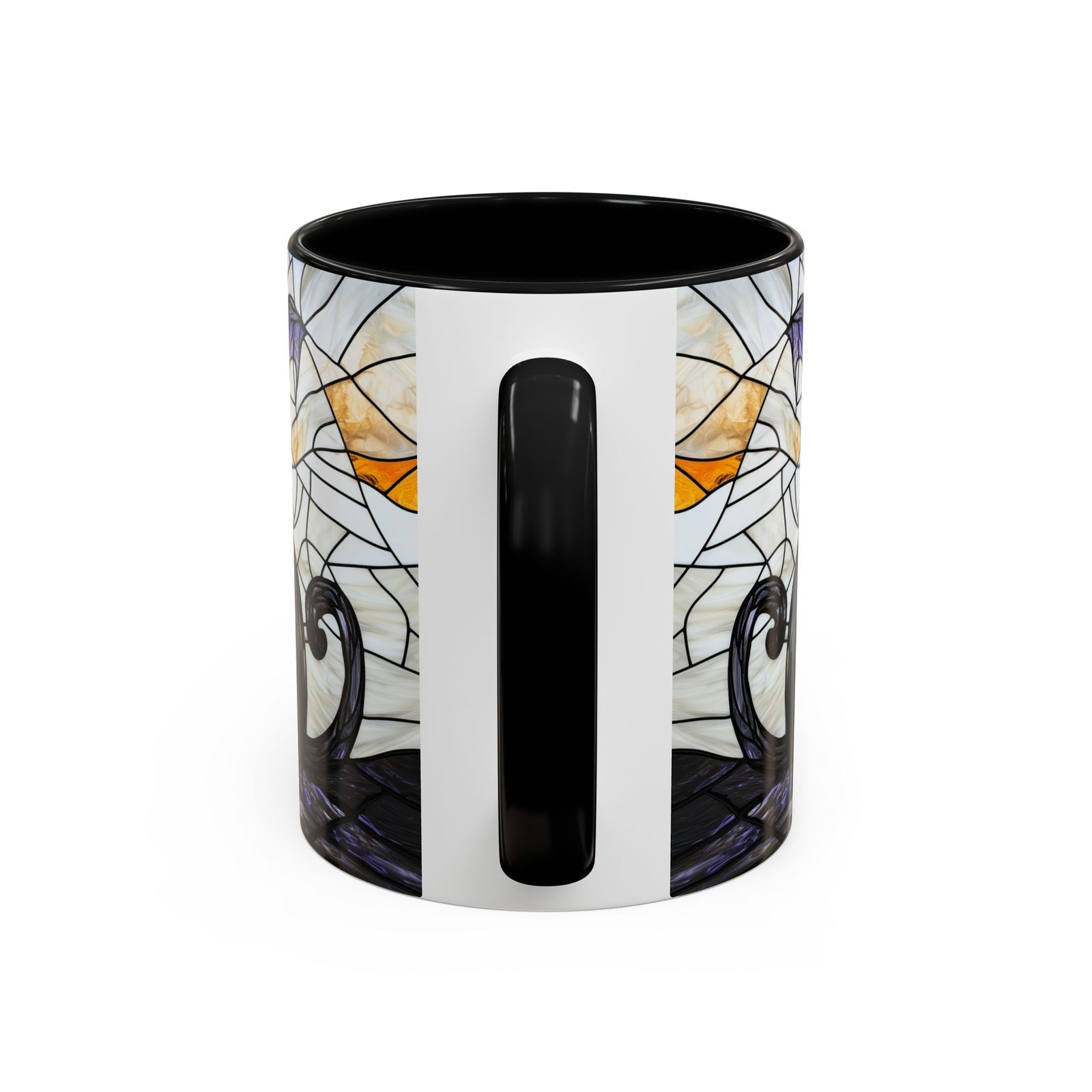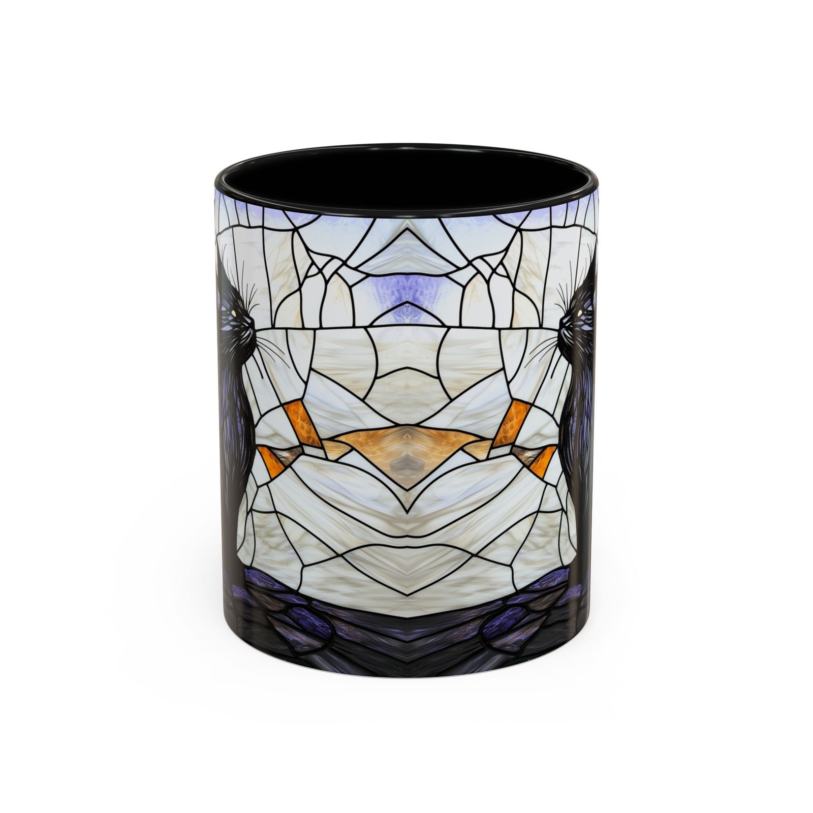 Bring a touch of dark elegance to your coffee ritual with this stunning stained glass style mug featuring a majestic black cat under a celestial sky. The intricate design mimics real stained glass with deep purples, warm amber tones, and swirling lines that create a rich, artistic texture. Whether you’re sipping morning brew or curling up with a book, this mug makes every moment feel a little more magical. A must have for cat lovers, fantasy fans, and anyone enchanted by gothic decor.
