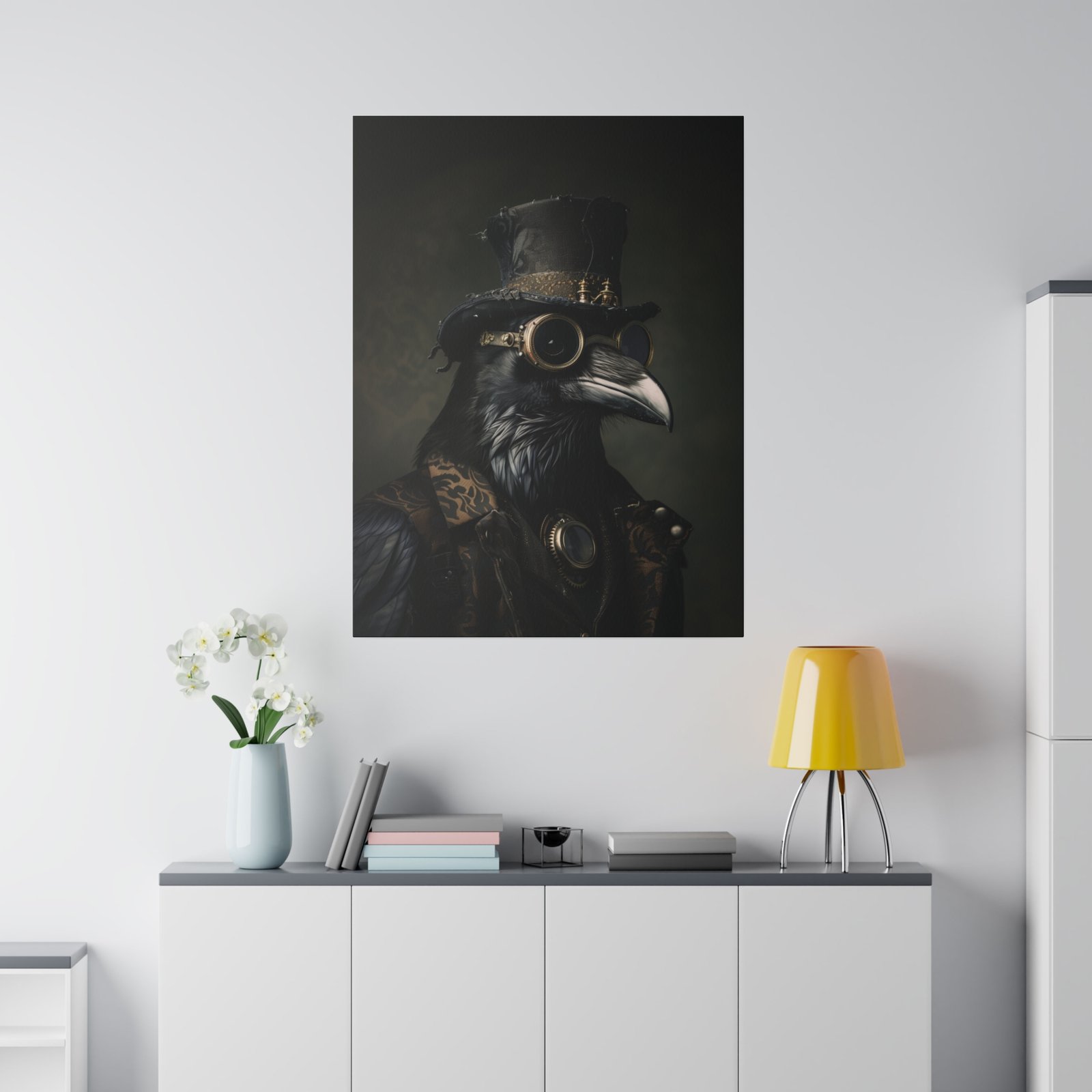 Step into a world where Victorian elegance meets industrial fantasy with this striking wall art piece featuring a raven adorned in full steampunk regalia. The regal bird is impeccably detailed, donning a weathered top hat outfitted with intricate brass gears and vintage goggles that glint with mysterious purpose. Its tailored vest and ornate medallion speak of high society and adventure, while the dark, moody background enhances the enigmatic aura of the portrait. Perfect for fans of steampunk, fantasy, or gothic decor, this artwork adds a sophisticated edge and imaginative flair to any room. A conversation starter and a bold statement, “The Steampunk Raven” is where the arcane meets the mechanical.